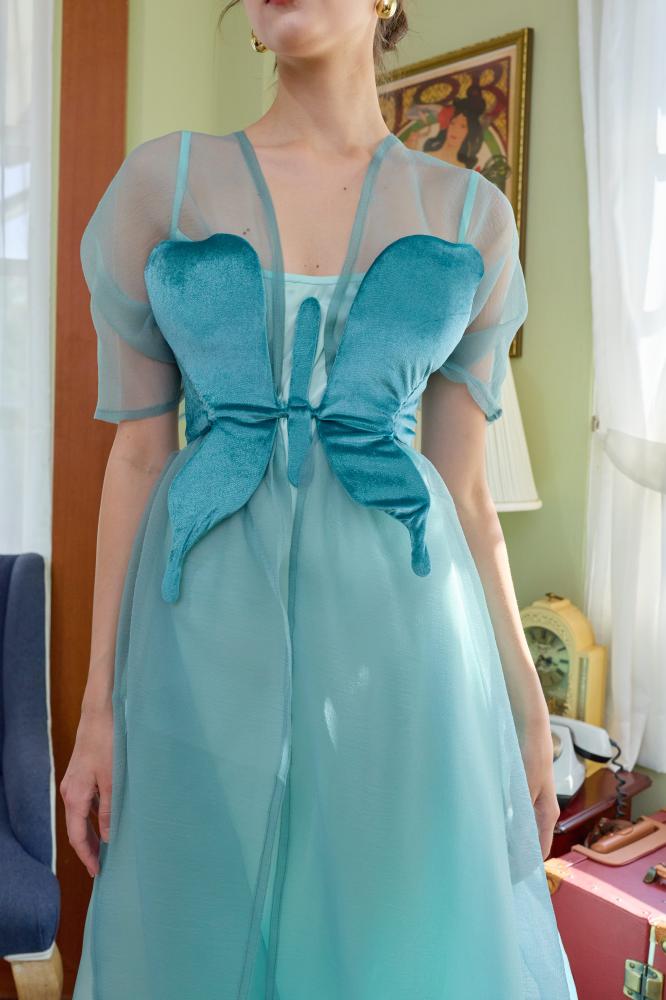 فستان شفاف بطبقات ناعمة وتصميم فراشة مخملية